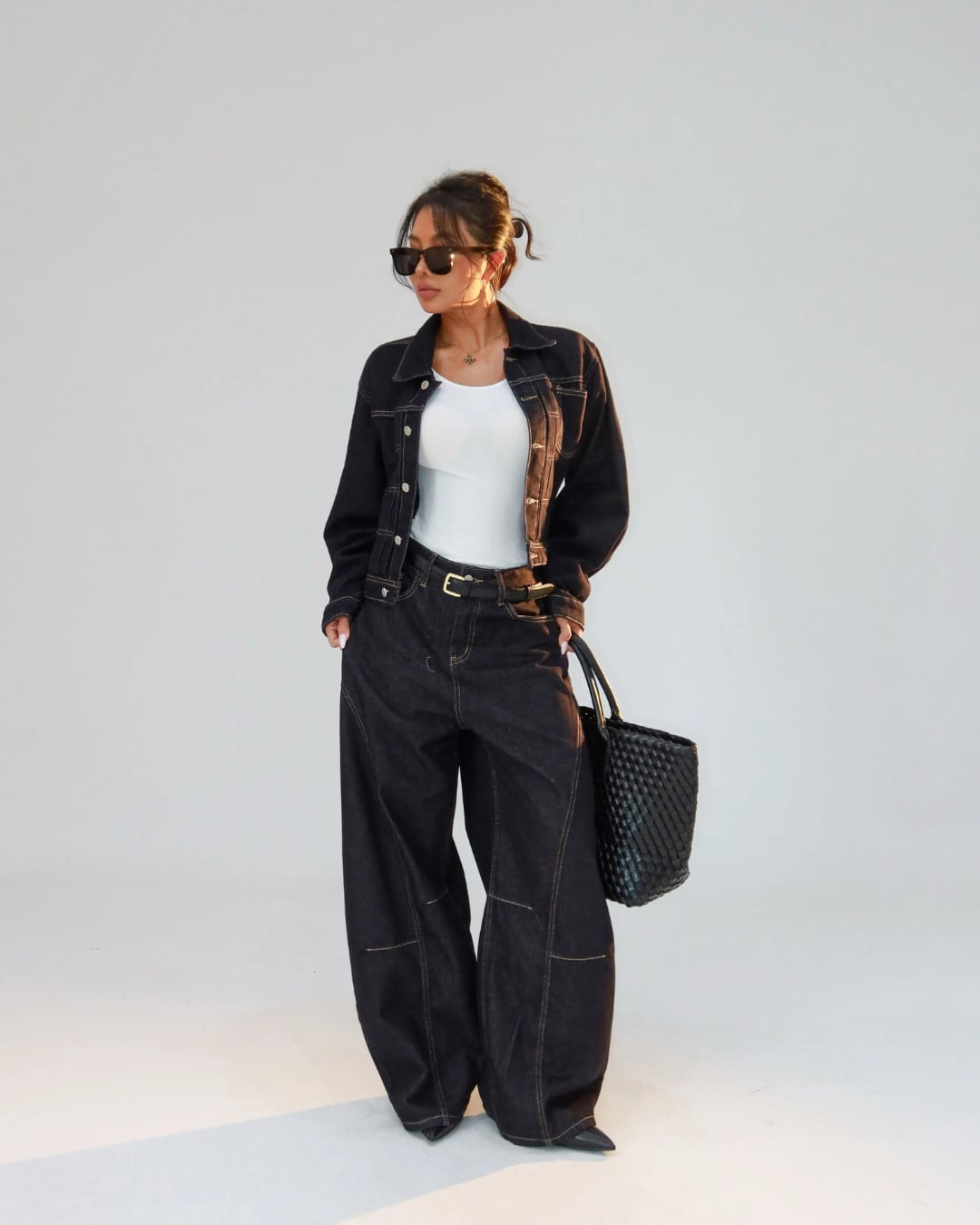 ステッチワイドデニムパンツ
