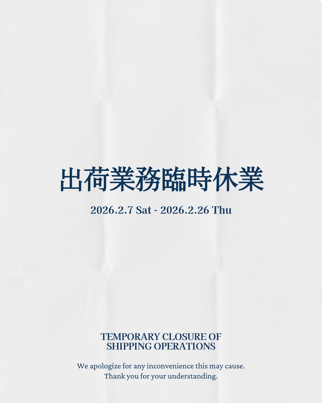 【2/7〜2/26】※出荷業務臨時休業のお知らせ(TOPページより詳細をご一読の上、ご利用いただきますようお願い申し上げます)