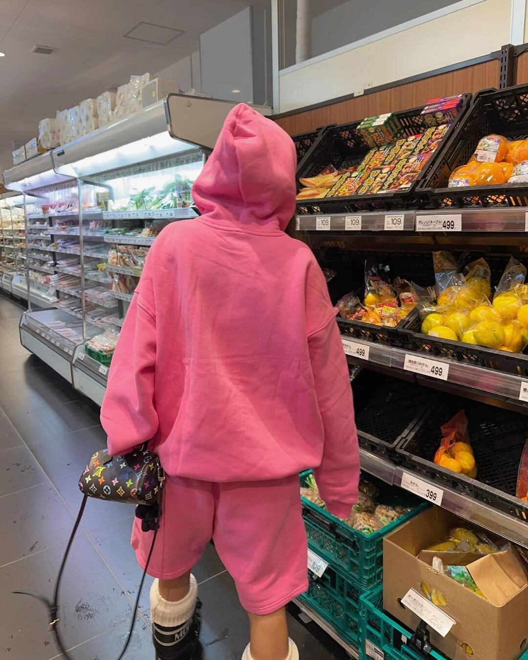 ルーズスウェットフーディー&スウェットハーフパンツ 裏起毛〈2ピースセット〉3色 kcs5015