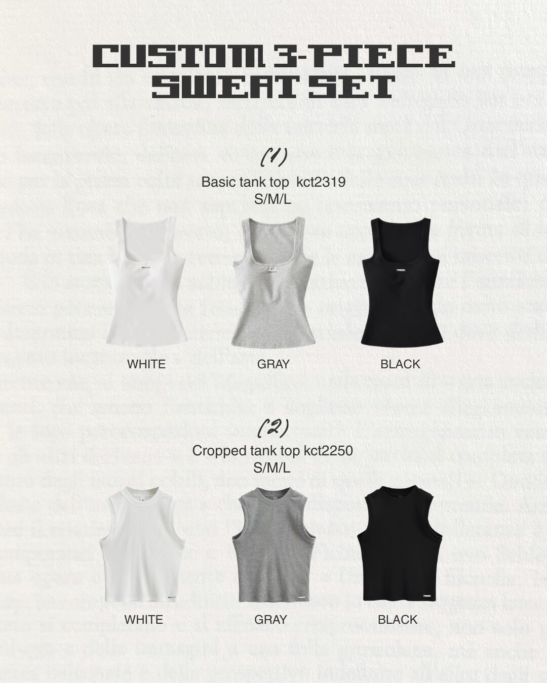 (1)or(2)の種類と、カラーは【ホワイト/グレー/ブラック】、