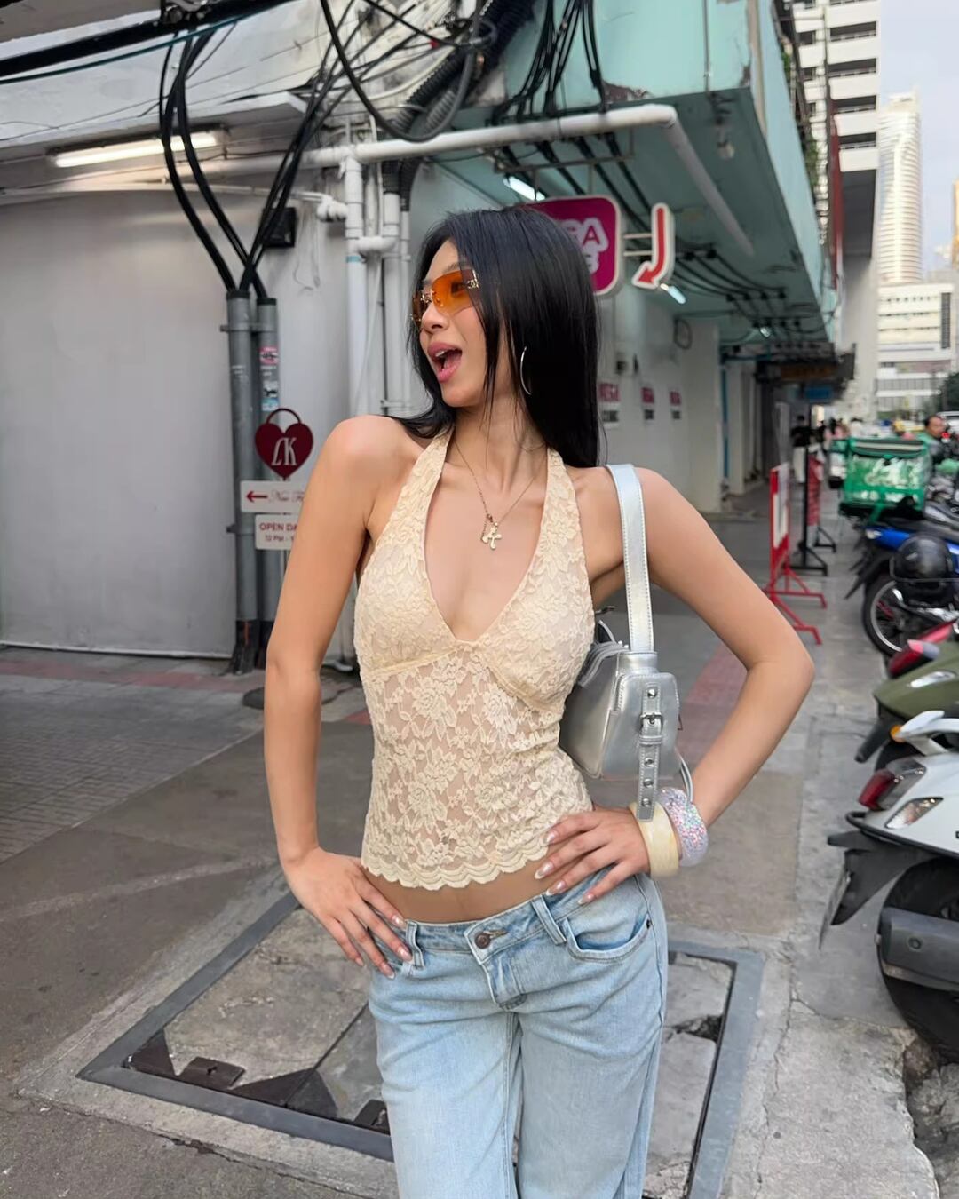 Vネックホルターレーストップス 4色 kct2380