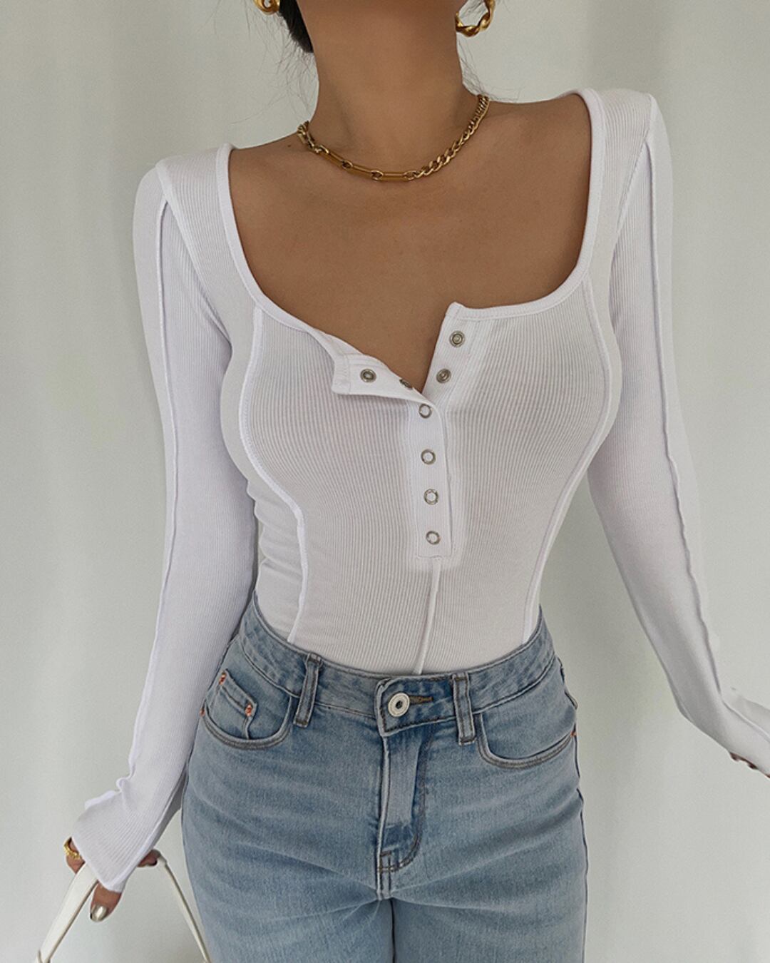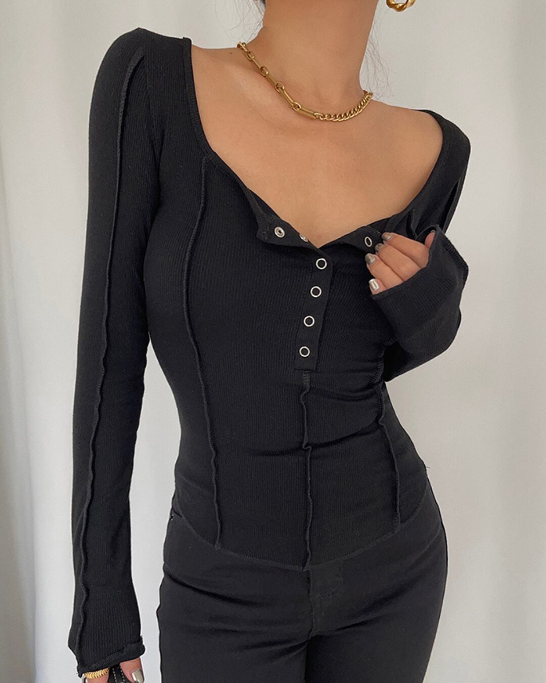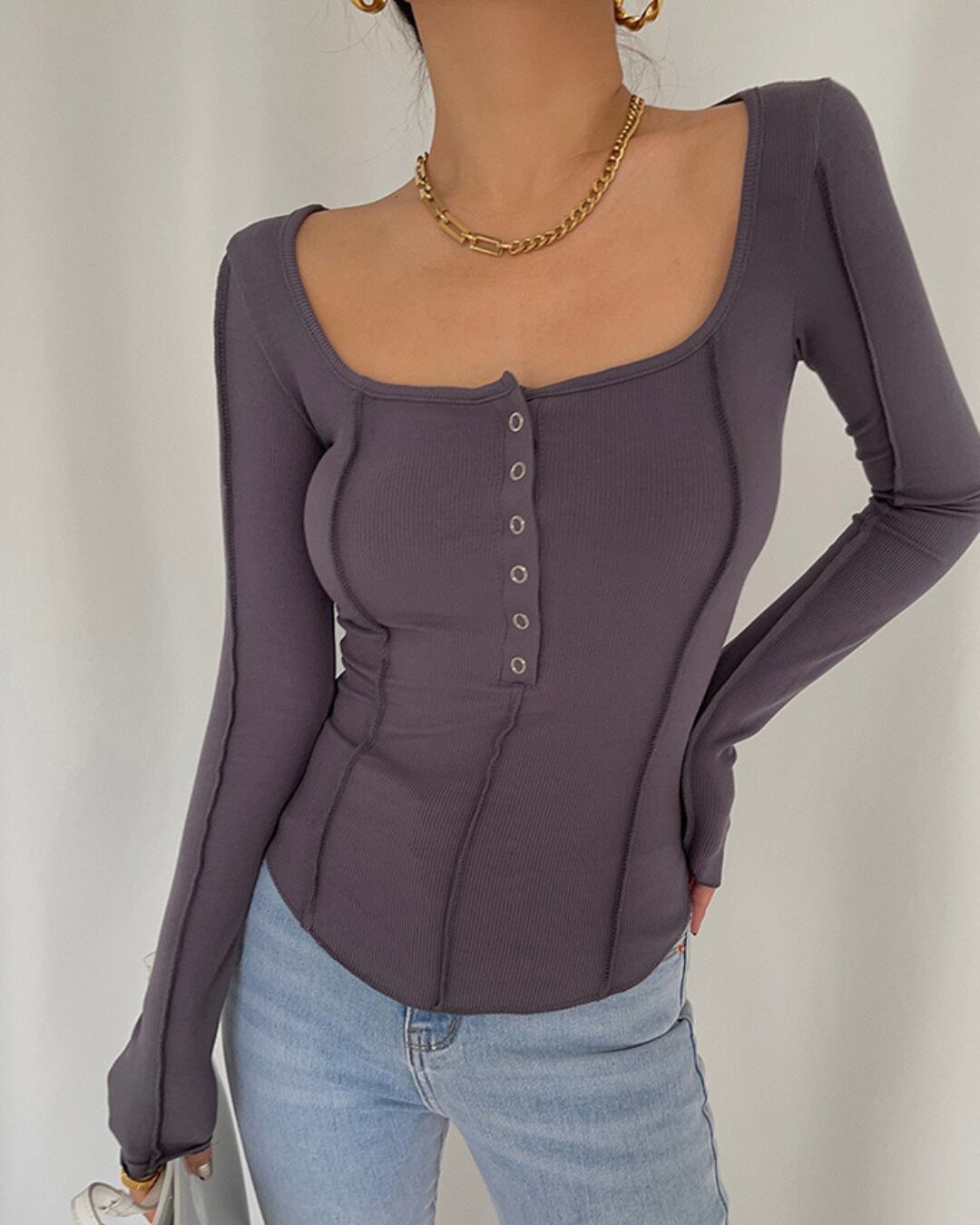 ヘンリーネックステッチライントップス 3色 kc629