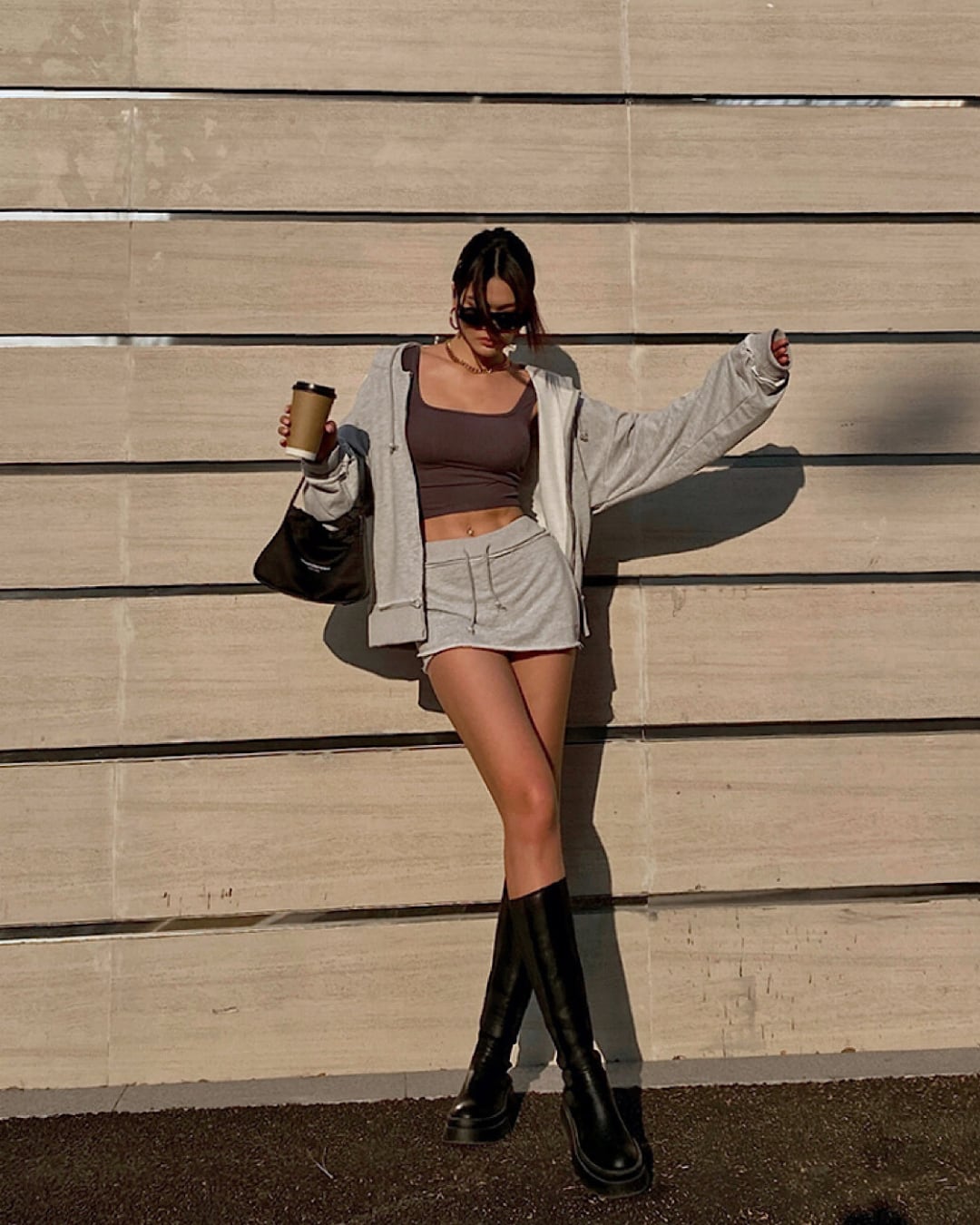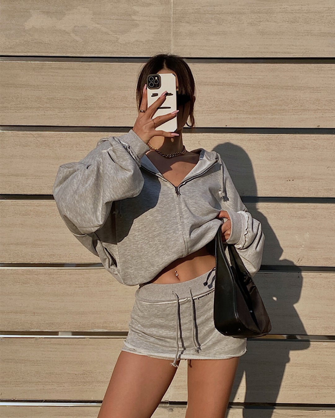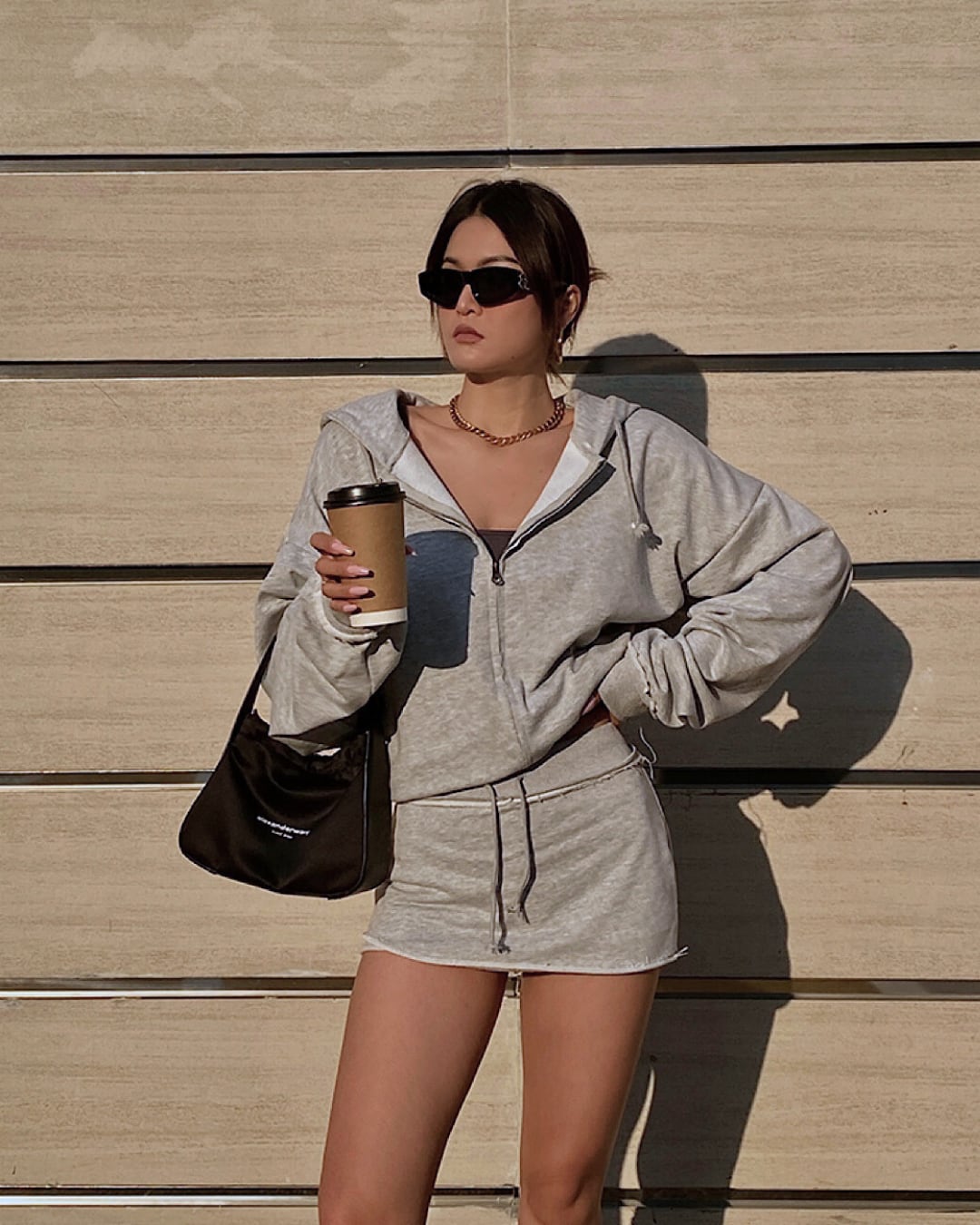 【@aaabooouuu様 着用】フーディートップス&キュロットスカート 2色〈2ピースセット〉kcs5003